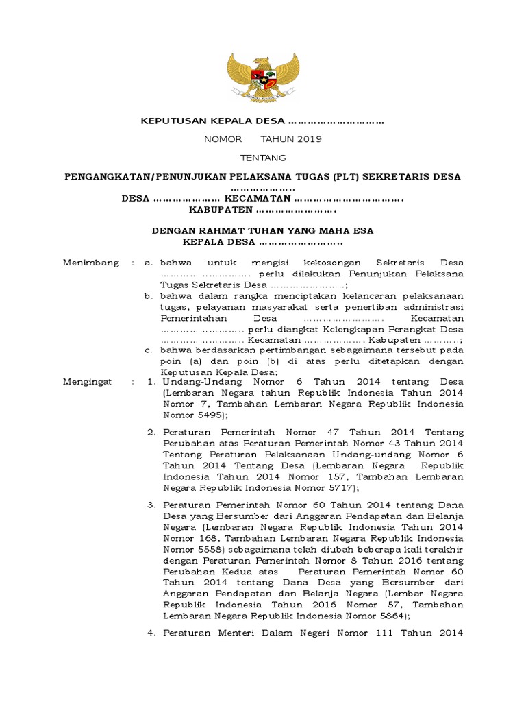 | Lihat Contoh Format Sk Plt Sekretaris Desa 2019 Terbaru Pdf |
