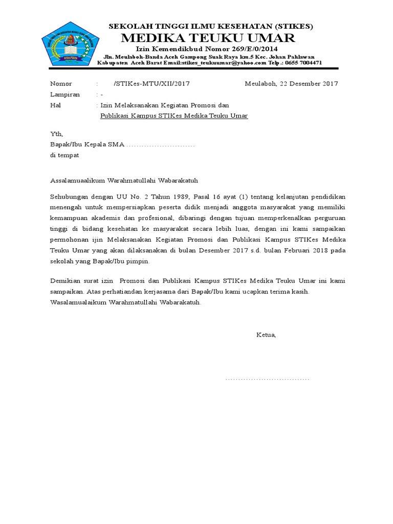 | Lihat Contoh Surat Izin Promosi Ke Sekolah Kumpulan Surat Penting |