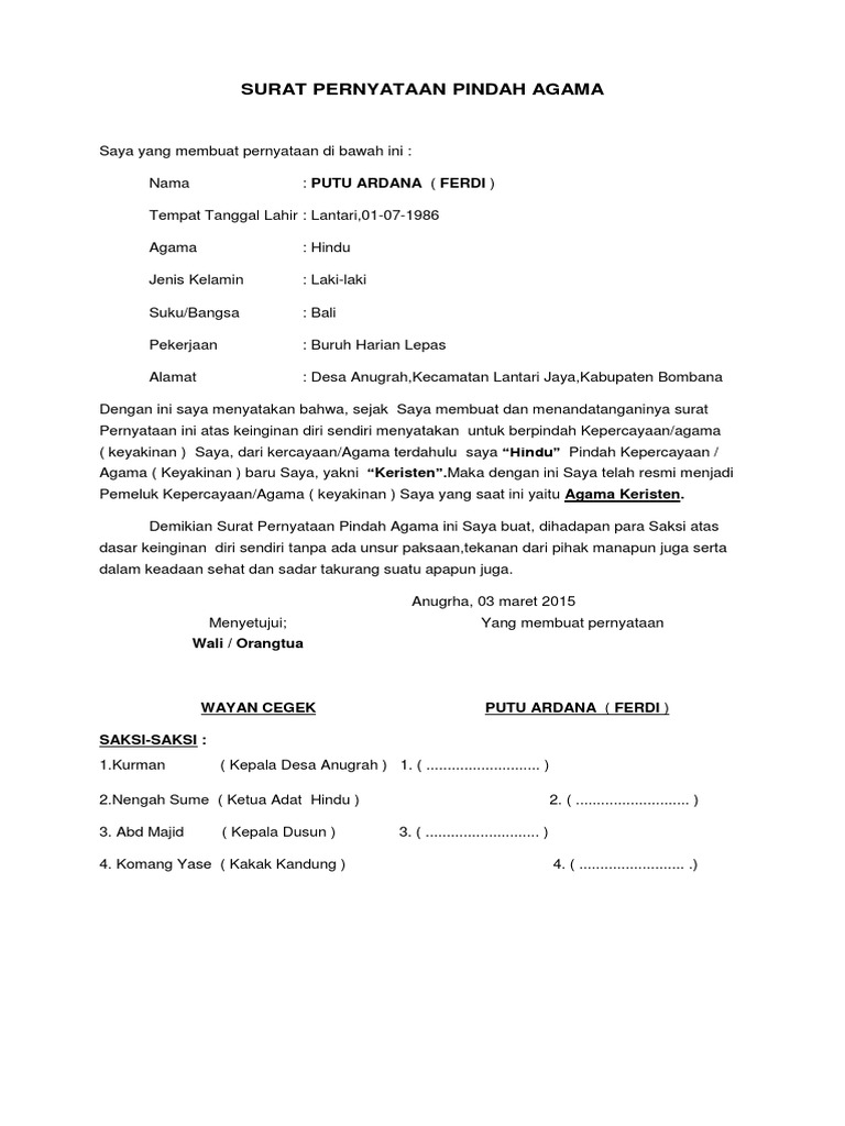 | Judul: Contoh Surat Keterangan Masuk Islam Contoh Surat |
